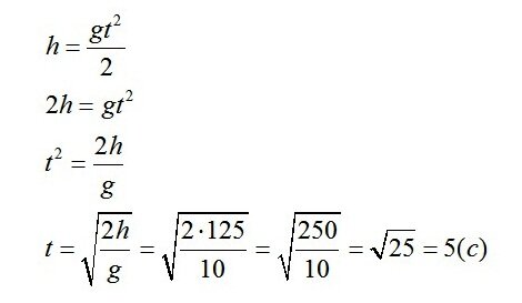 Подставляем числовые данные, получаем h = 10 x 16/2 = 80 метров, правильный ответ № 2. 2. Свободное падение тел с начальной скоростью Решение. В данном случае нам пригодится аналогичная формула, но в которой учитывается начальная скорость
